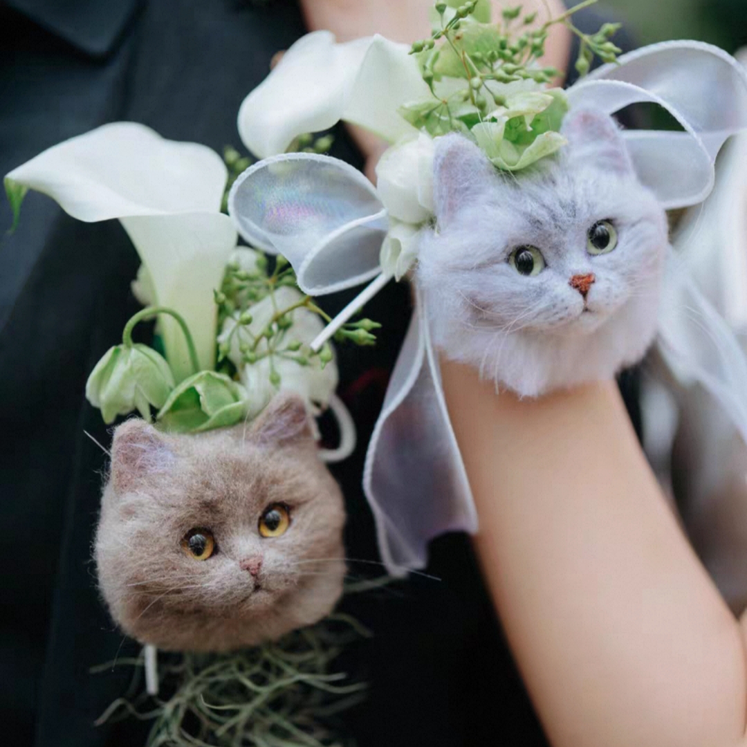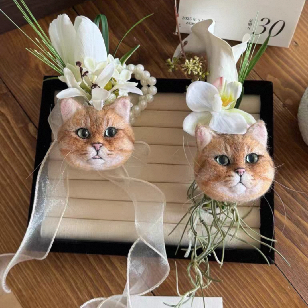 Witness your wedding highlight with your furry friend! This custom pet felt portrait brooch captures your pet’s cute charm perfectly. Crafted from soft felt and adorned with exquisite accessories (bows, small flowers, mini bow ties, etc.), it’s brimming with romantic ritual. Ideal for the groom’s lapel, the bride’s veil, or as a heartfelt wedding favor, it lets your pet’s sweetness shine through the whole celebration. Handmade with meticulous attention to your pet’s unique features, it carries your intimate bond and adds an irreplaceable warm memory to your special day.